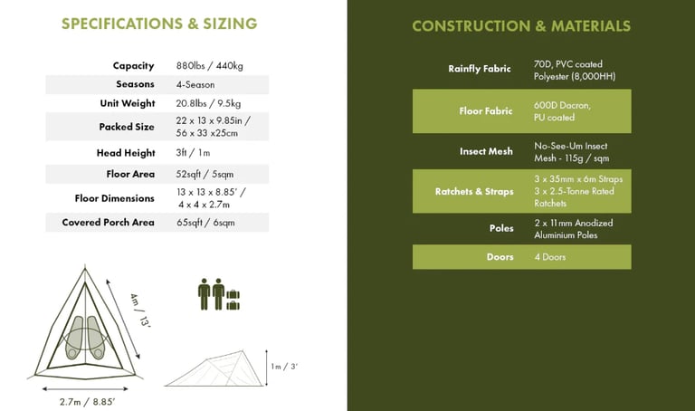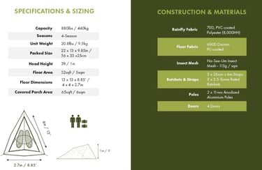 Hardcore 600D Dacron floor withstands extreme climates and heavy use