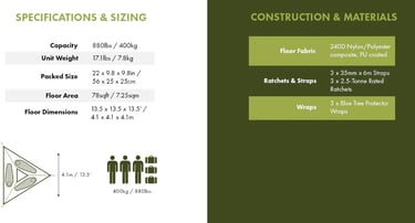 Sleeps 3 adults or 2 adults + 2 kids with 400kg / 880lbs capacity