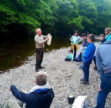 The river Avonmore and a small stream meanders through the site and there is a gravel beach for everyone to enjoy. During the evenings and early summer mornings, wild brown trout can be seen feeding on the surface and one could be lucky to witness a herd of wild deer in the woods or crossing the river. Other animals you might also see are pine martens, usually making their way along the water's edge.