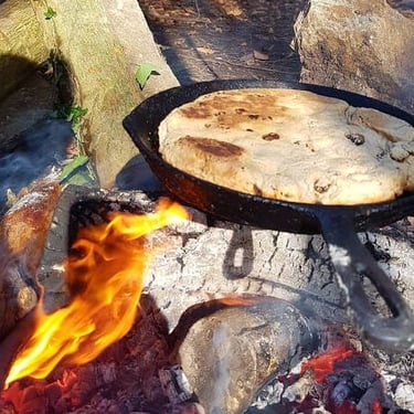 One of the things we love to do in the forest, is to cook over the open fire. With the sounds of the rustling leaves, the flow of the river and birds singing in the background, food always seems to taste so much better. By combining creativity, fresh locally sourced ingredients, an open fire and a whole load of passion, this enables us to offer a unique food experience. A choice of catering options are available to be booked for your stay. We also offer bespoke menus for feasts in the woods suitable for larger groups or private events. Using our roasting boxes, smokers, steamers and Asado cross we cook large cuts of meat the South American way. Food is normally served 'Street Food' style using biodegradable cutlery and packaging. Every Sunday from June we will hold a BBQ Picnic in the Woods. A perfect day out with the family!